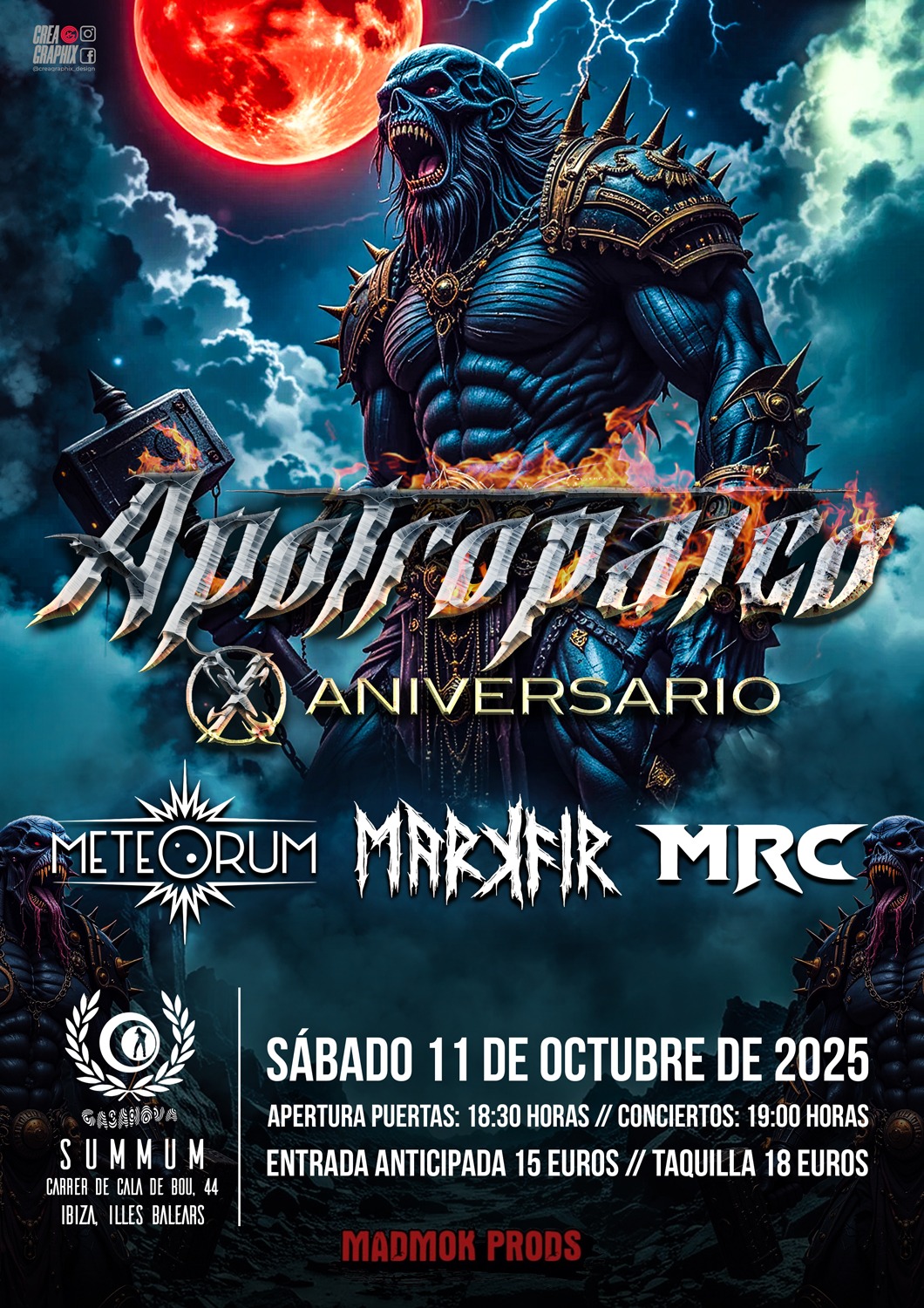 En el cartell els acompañen Meteorum, una de les noves promeses del metalcore illenc; MRC, la banda de Marc Riera, que retorna, i, per primera vegada a l’illa, el grup italià Markfir, format per Daniel Ghirardini, ex membre d’Apotropaico. La formación repassarà bona part de la seua discografia i hi haurà aparicions especials d’antics membres, com el propi Dani Ghirardini o Toni Bonet, així com algunes sorpreses.