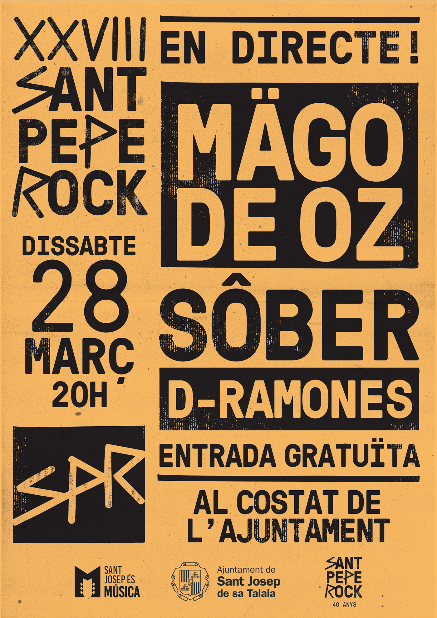 Prèviament a la XXVIII edició del Sant Pepe Rock, el programa de les festes patronals contempla la celebració de diferents concerts als bars del poble, entre les 16 i les 20 hores. El grup escollit pel bar Can Bernat Vinya és Eivissurfers i a més actuaran Uncle Sal (Es Galliner), The Metrallas (La Espiga/60 Grados), Stocks Organ Trio (Can Riku) i ZZ Rock (Sa Raval). A més, es realitzarà una festa infantil denominada Pepito Rock, amb activitats per als més petits, entre les 17 i les 19 hores. Mägo de Oz i Sôber, ja en el Sant Pepe, actuaran a la nit, amb D-Ramones als plats entre actuacions.