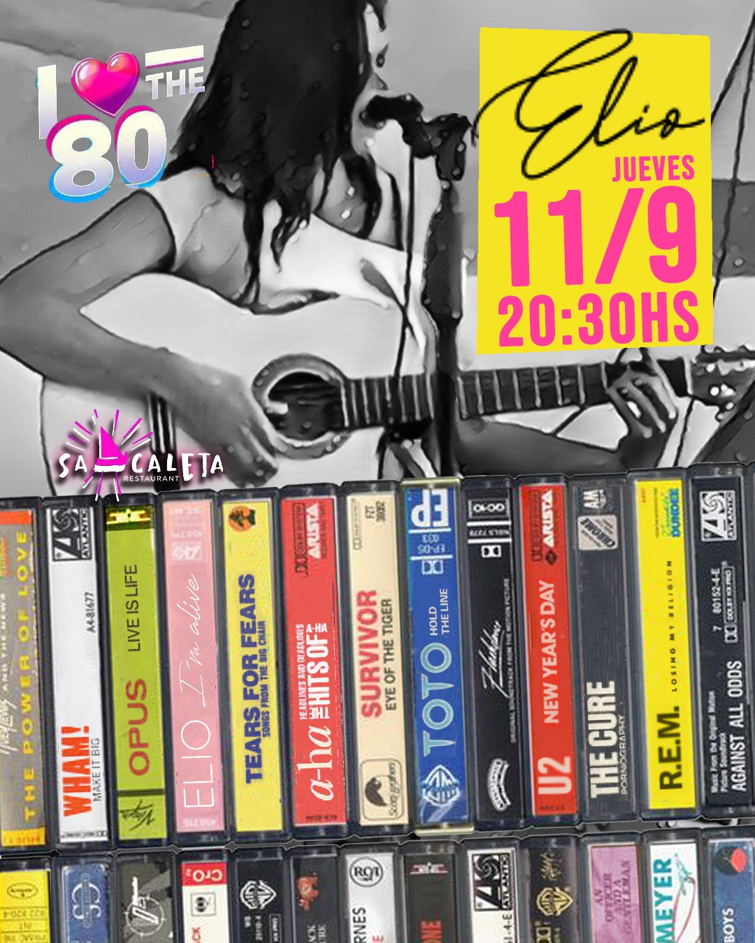 Eleonora Crispo, Elio, una de les cantants de tango més prestigioses d’Eivissa com a part del duo Mano a mano, actua aquesta vegada en solitari a l’escenari del restaurant Sa Caleta, amb l’espectacle ‘I Love the 80’s’. Guitarra en mà, Elio porta versions de cançons en anglès que varen triomfar en aquella època daurada, popularitzades per grups i artistes com The Cure, Wham, Toto, REM, Alphaville, Rod Stewart, Erasure, Tears for fears, Simple Red… Un espectacle acústic i íntim, amanit també d’improvisacions i melodies pròpies.