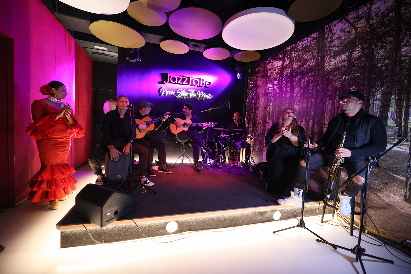 Que te quiten lo bailaoEl grup teloner serà Que te quiten lo bailao, formació local que versiona grans èxits i clàssics populars en clau de flamenc, rumba i sevillanes. El forma un equip de músics i cantants professionals d’alt nivell. L’alineació habitual està composta per Ismael Rodríguez i Iván Córdoba a les guitarres flamenques, Luis Amador ‘Pata Negra’ a la percussió, Angel García ‘Wayabo’ al saxo, Manoli Fernández i Miguel Ángel com a veus principals i Tamara Rodríguez al ball. Entre els artistes i grups que versionen trobem als Gipsy Kings, Don Omar, Manu Carrasco, Karol G, Ketama, Manolo García…