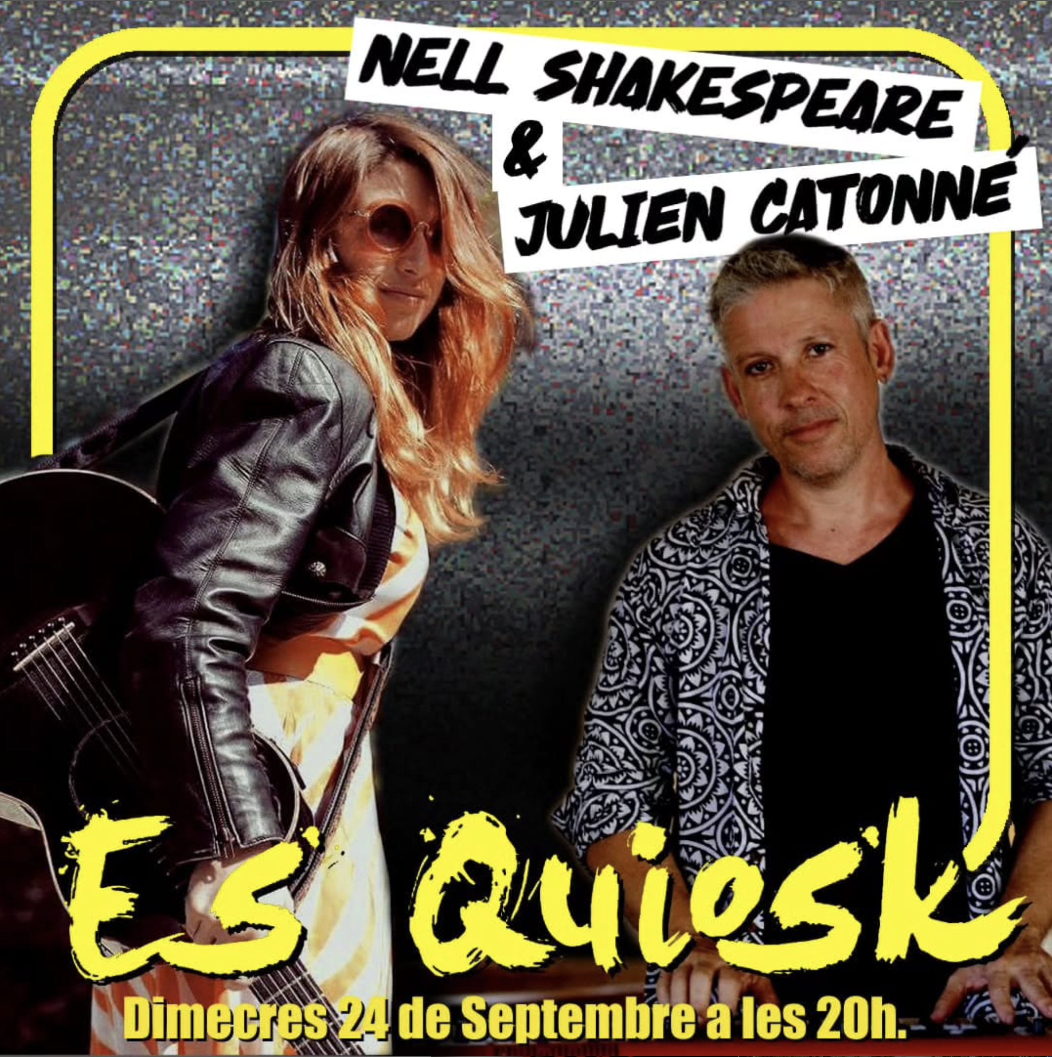 Es Quiosk, a Cala Vedella, és un dels quiosquets més autèntics d’Eivissa i ofereix música en viu tots els dimecres de l’estiu. En aquesta ocasió protagonitza el cartell la cantant britànica Nell Shakespeare, que torna a aquest escenari amb la guitarra acústica i acompanyada del pianista Julien Catonné. Ofereixen un repertori de temes de rock, pop i soul de grans artistes com Queen, Talking Heads o David Bowie, als quals Nell, secundant-se en la seua veu potent, confereix un estil íntim i particular.