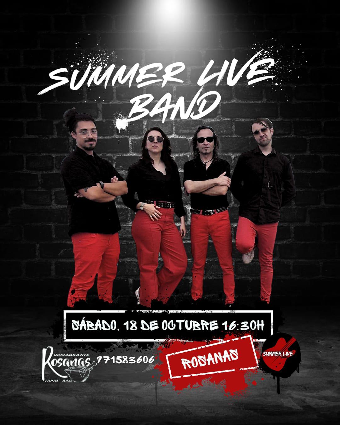 Tots els dissabtes hi ha música en viu al restaurant Rosana’s, prop de Can Bellotera. En aquesta ocasió protagonitza el cartell una de les formacions habituals de l’establiment: el grup Summer Live. Actuaran en format quartet i porten un ampli repertori de covers de pop, rock, soul i funky. Componen la banda Leyre Ibisate (veu), Javi Riera (baix i veu), Jesús Zamora (guitarra) i Carlos Lemmi (bateria).