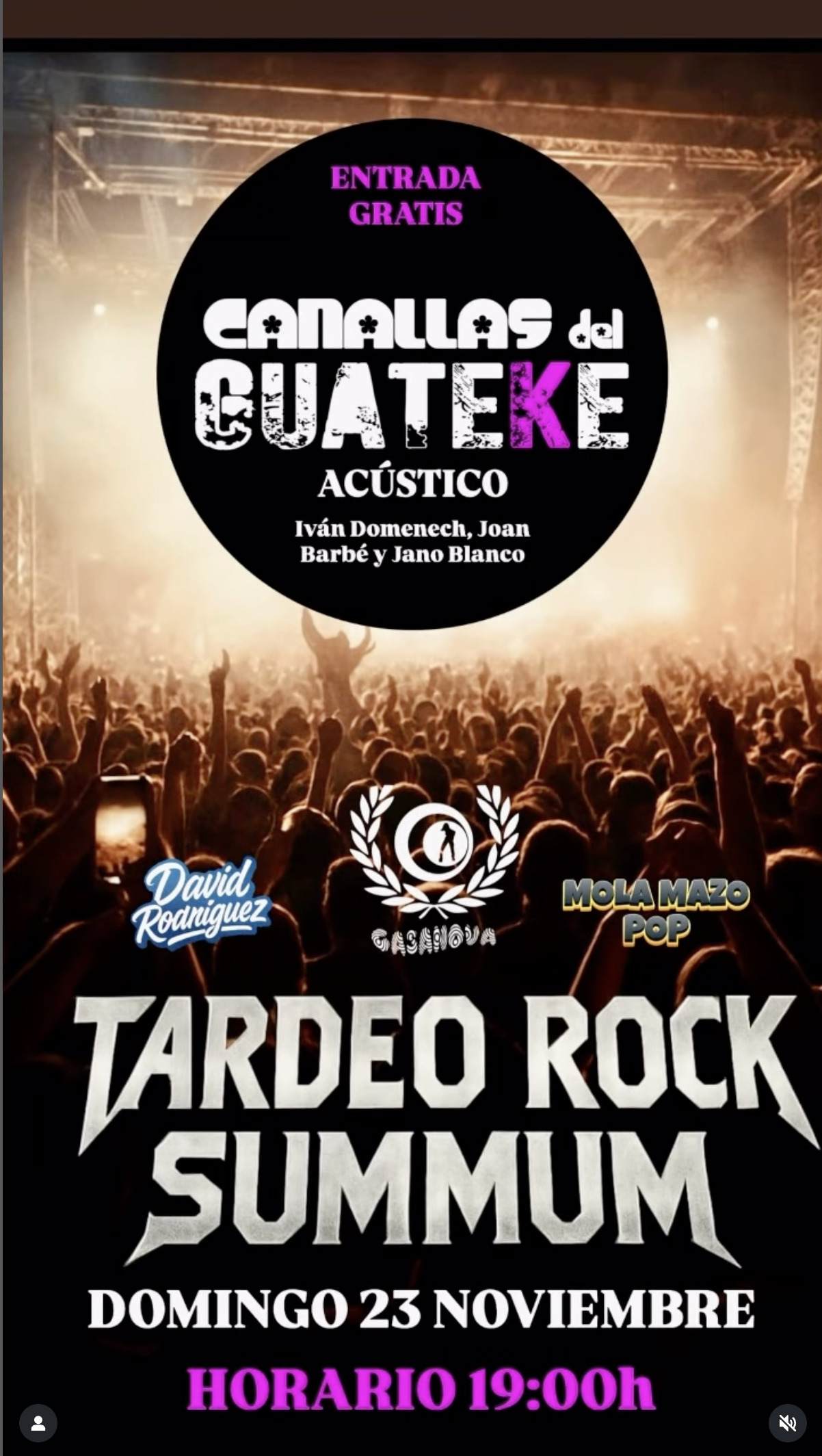 La sala de festes Summum Casanova, a Cala de Bou, ofereix els diumenges sessions de Tardeo Rock amb les millors formacions locals. Aquesta vegada protagonitza el cartell la famosa banda Canalles del Guateke, que actuarà a trio i en acústic. També actuarà el Dj David Rodríguez. L’accés és gratuït.