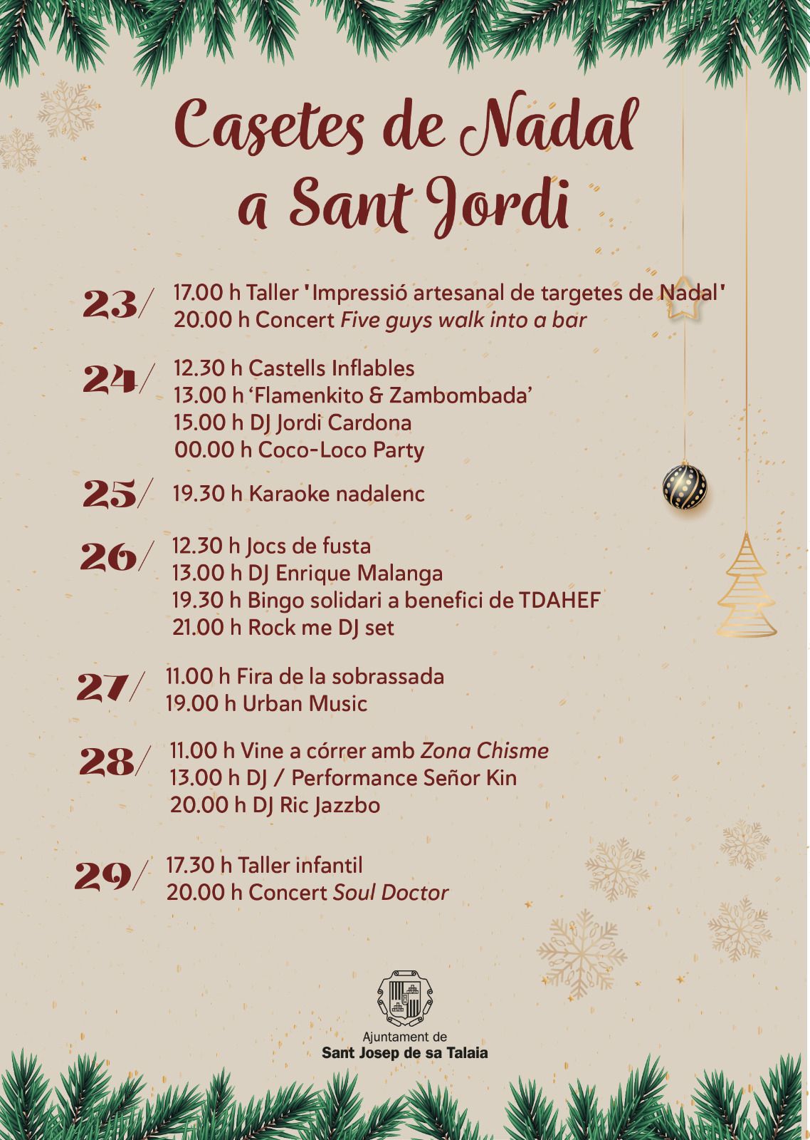 Pots descarregar el programa complet de les Festes de Nadal creat per l’Ajuntament de Sant Josep i diferents col·lectius socials, en aquest enllaç.