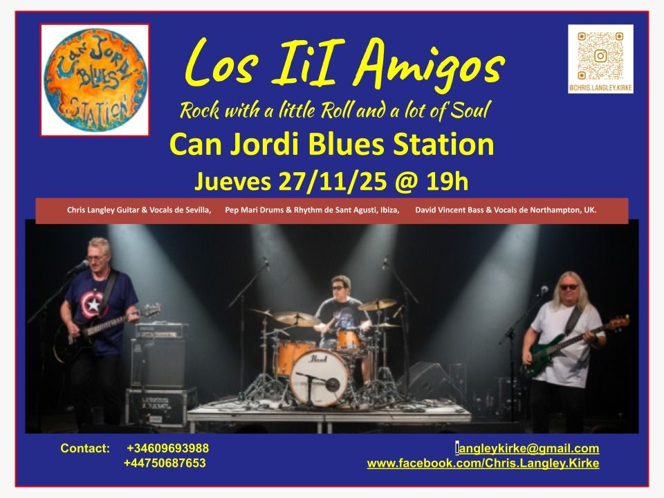 Chris Langley, un dels cantants i guitarristes professionals més coneguts d’Eivissa, torna a Can Jordi amb el seu trio, Los III Amigos, del qual també formen part el baixista I cantant David Vincent i el bateria Pep Marí. Oferiran un repertori d’autèntic rock and roll. Langley resideix a l’illa des de 1982, després de deixar el Regne Unit on va gravar diversos senzills i un àlbum amb la seua banda The Imposters. Des de llavors, Chris ha passat per escenaris de tota Europa i a l’illa actua en solitari, amb aquest trio, amb la banda de rock Backbeat o amb la seua formació de blues Road Trip. Va ser un dels integrants originals de Statuas d Sal, músic resident a l’Hotel Ibiza Rocks amb la banda Burn i va exercir de manager en un dels locals de música en viu en el seu moment més importants de l’illa: Hogan’s Rock.