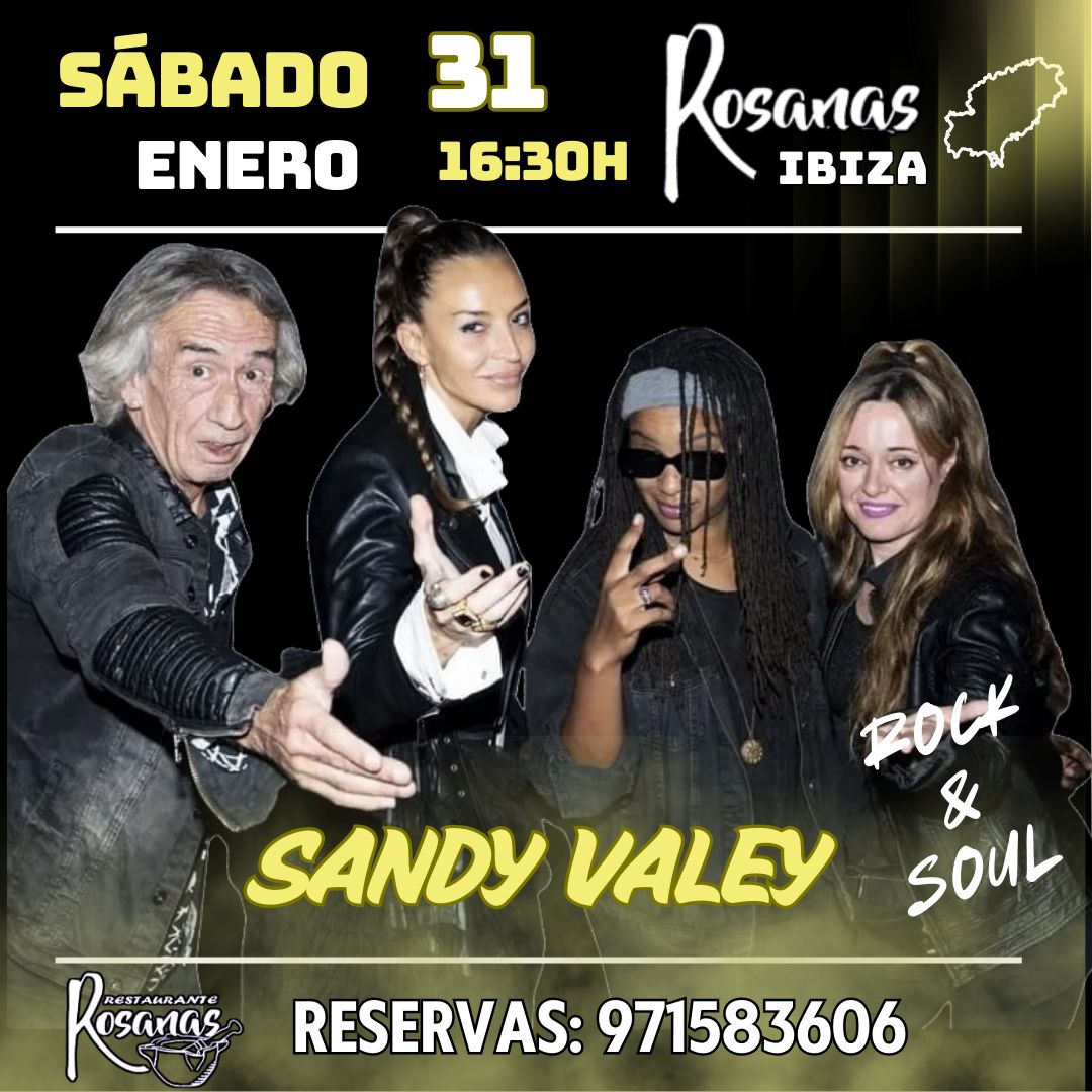 Cada dissabte, el bar restaurant Rosana’s es converteix en escenari de concerts, amb les millors bandes de l’illa. Aquesta vegada torna a rebre l’artista Sandy Valey, amb un repertori de versions molt especial, inspirat en la seua majoria en cançons del gran Elvis Presley, que interpretarà acompanyada de la guitarrista Cristina Sainz, el pianista Víctor Gresely i la bateria Brianna Flowers.