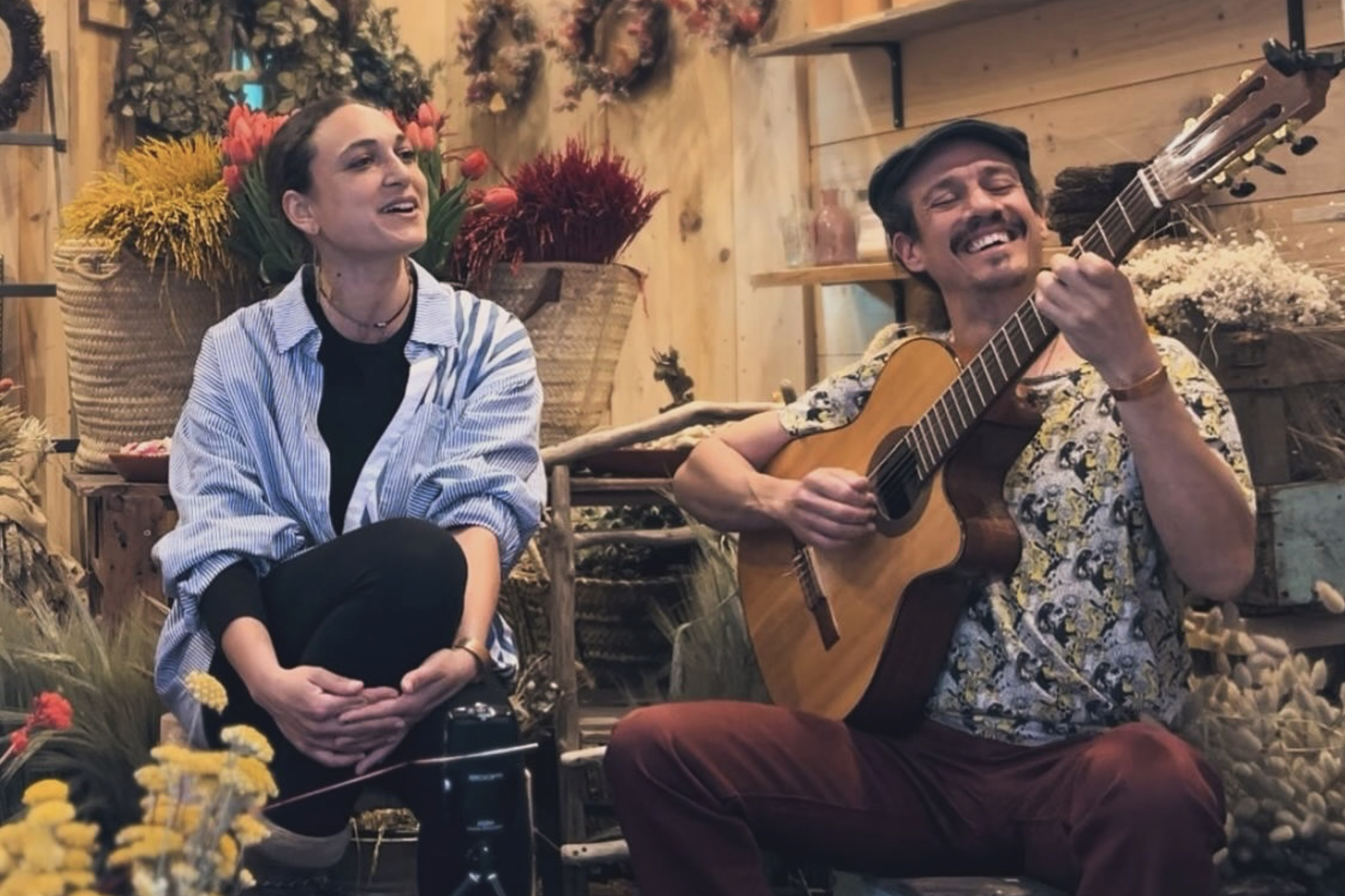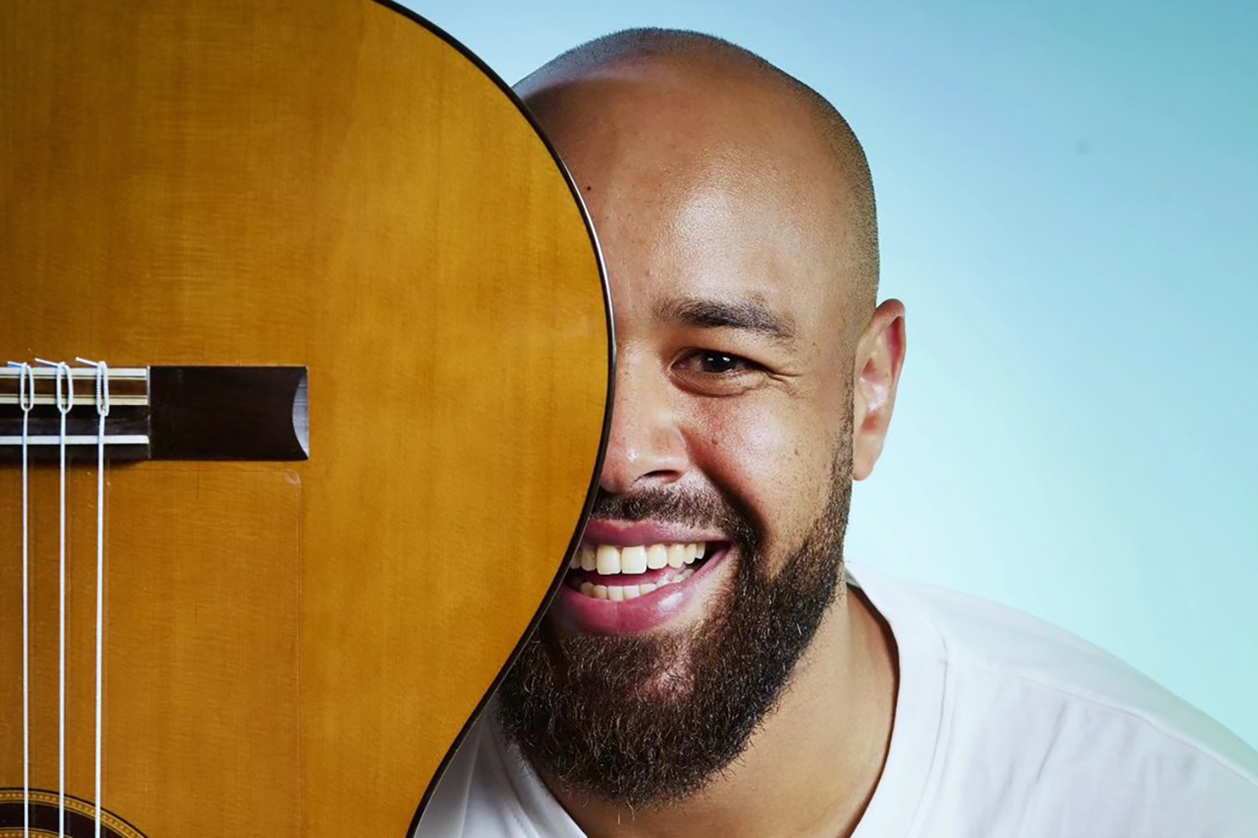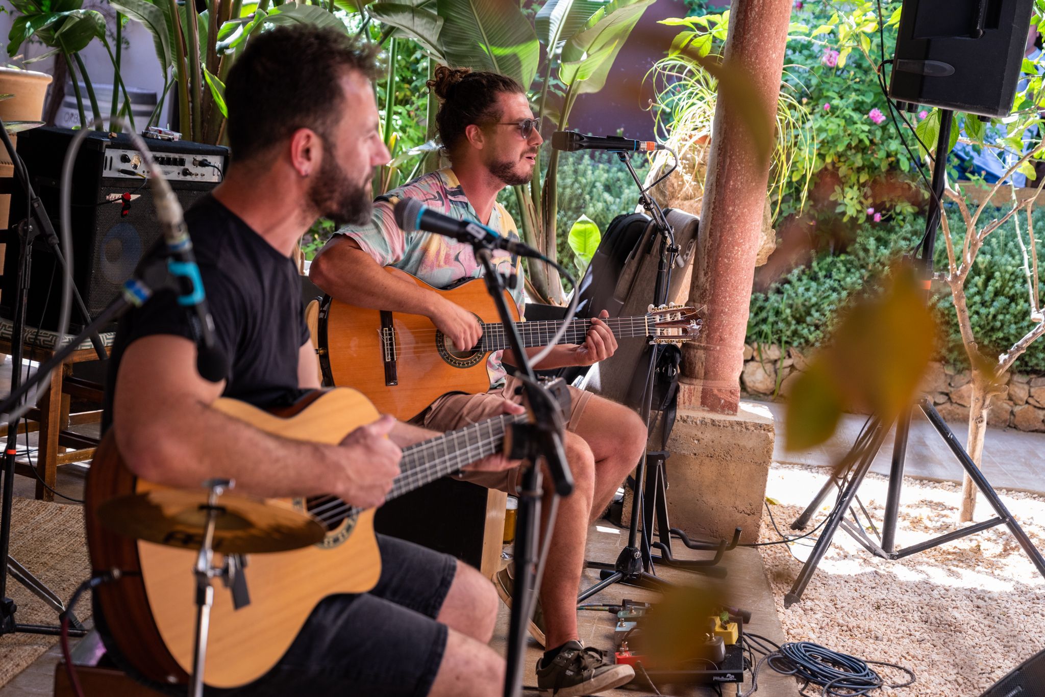 Héctor Roldán i la seua guitarra, a l’escenari del restaurant Cas Costas