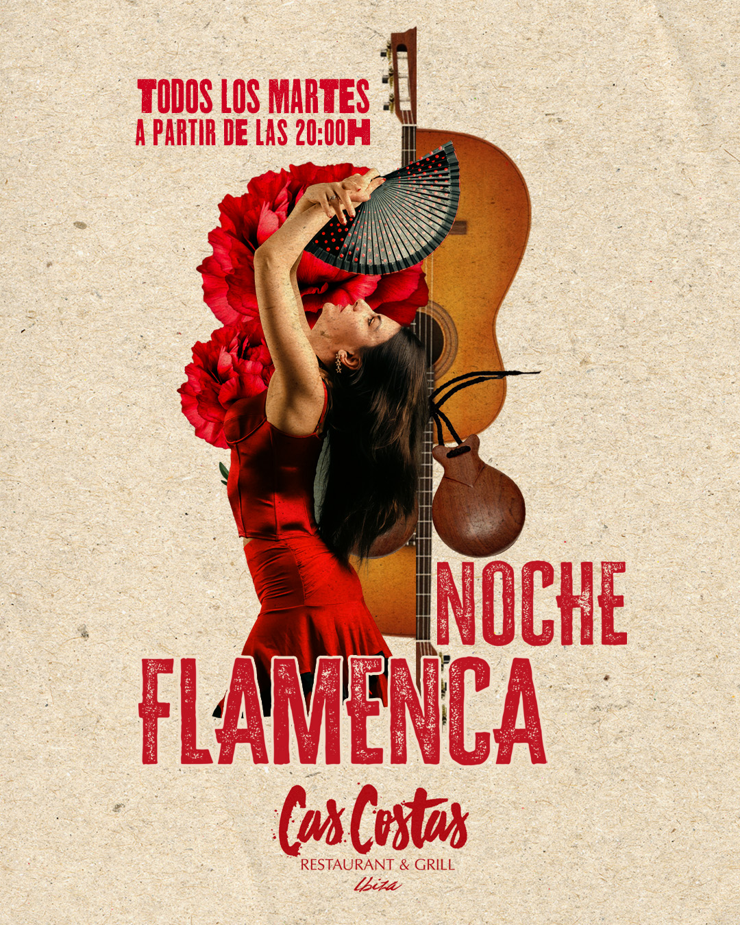 Todas las temporadas, el restaurante Cas Costas dedica los martes a programar una Noche Flamenca, en la que actúan los mejores artistas de este género en la isla. En esta ocasión visita su escenario el dúo Flor de Azahar, formado por la cantante Azahar López y el guitarrista Toni Muñoz. Ofrecen un repertorio de temas originales de flamenco fusión que alternan con algún cover de Ketama, Alba Molina y otros artistas del género. Ambos confieren a las canciones que interpretan un toque propio, que destila pureza e intensidad.