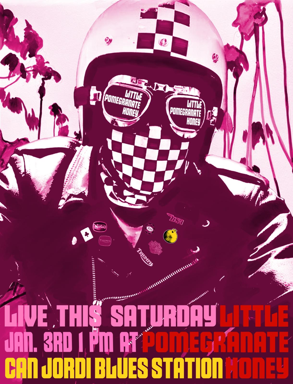 Can Jordi Blues Station comienza su calendario musical del nuevo año con la actuación de la banda Little Pomegranate Honey, que traducida al ibicenco significa ‘Mel de magraneta’, un delicioso néctar que producen las granadas de variedad pequeña. El grupo sirve un repertorio musical igual de suculento compuesto por versiones de grandes artistas y grupos de blues y rock, como The Allman Brothers, B. B. King, Fleetwood Mac, Peter Green, John Lee Hooker, Derek & The Dominos, etcétera. Actuarán con Marc Serra (voz y guitarra), José David Cruz (guitarra y armónica), Víctor Gresely (piano), Rafa Bonet (bajo) y Luis R. del Cerro (batería).