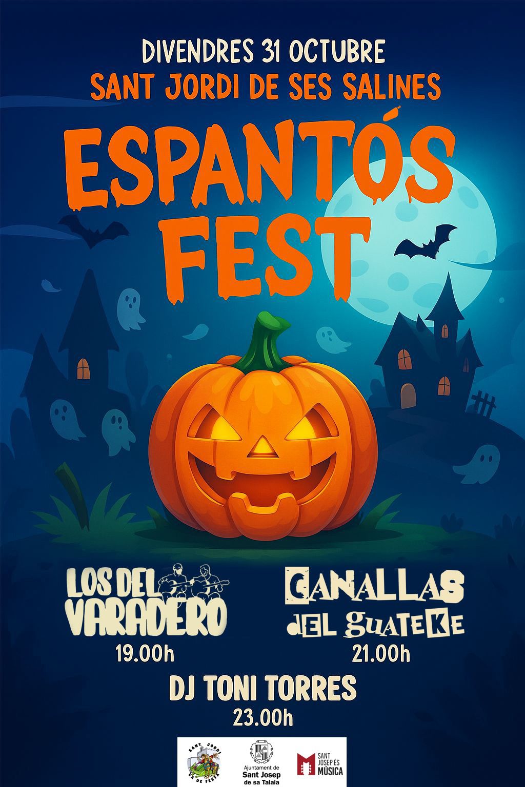 Como ya es tradición, todos los años el Ayuntamiento de Sant Josep organiza un completo programa de eventos para celebrar Todos los Santos, que incluye una nueva edición del ‘Espantós! Fest’, que tiene lugar en la plaza de Sant Jordi. Este año el show correrá a cargo de los grupos Canallas del Guateke (21 h.) y Los del Varadero (19 h.), y el DJ Toni Torres (23 h.). El evento se desarrolla en colaboración con la comisión de fiestas Sant Jordi va de Festa.