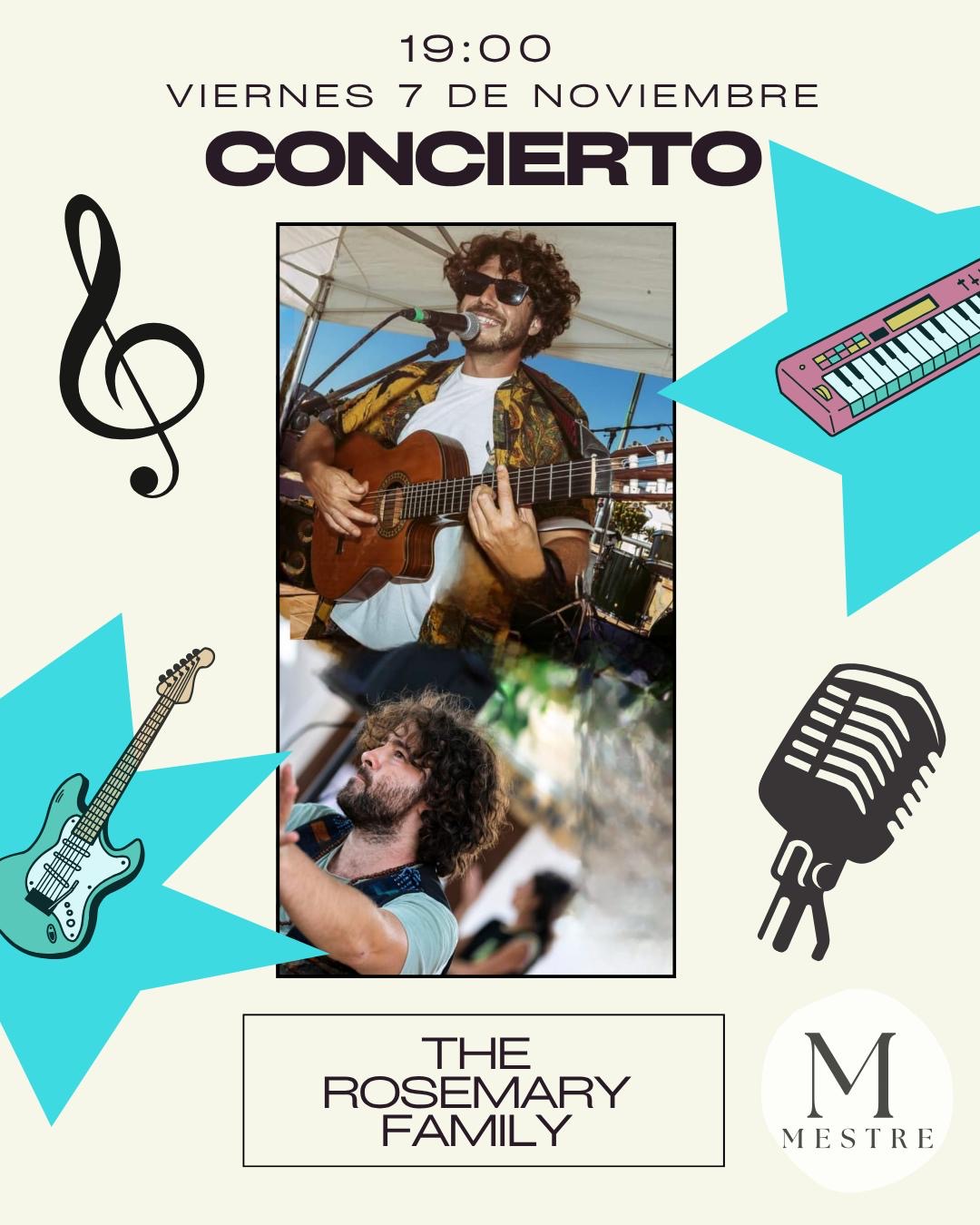 El bar restaurante Cas Mestre, en la carretera de es Cubells, ofrece conciertos los viernes por la noche. En esta ocasión protagoniza el cartel The Rosemary Family, que actuará en formato dúo, con Mario Romero a la voz y a la guitarra y Sam de Lara a la percusión. El grupo se caracteriza por su fusión de flamenco con otros géneros musicales como el rock, el funk o la rumba, siempre con su particular estilo, que invita al jaleo y la diversión.