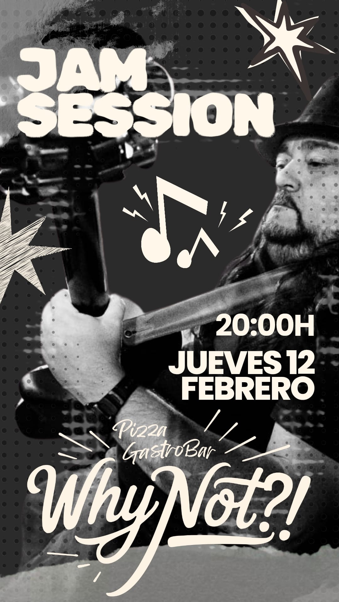Why Not, el bar restaurante de Cala de Bou, ofrece este jueves una jam session especial. La lidera el cantante y guitarrista Albert Oliva, que estará acompañado de un nutrido grupo de músicos amigos. Oliva es uno de los artistas más habituales de los escenarios de la isla y ha dirigido multitud de jam session, entre las que destacan las que se celebraban al atardecer en es Cubells, durante los veranos. Asimismo, actúa con numerosos grupos, como 12 Bars All Blues, Eivissurfers, The Peluts, Around & Around y otros.