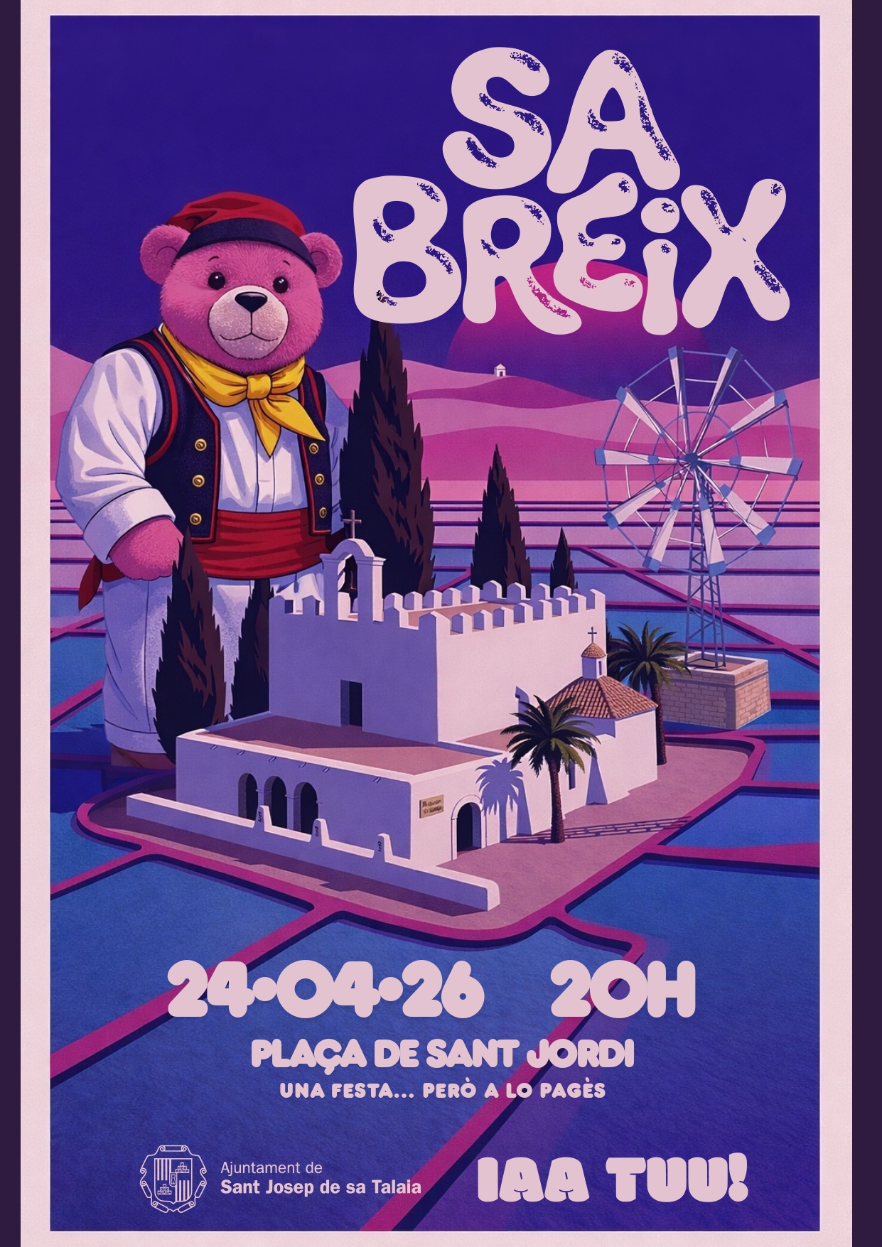 El programa de las fiestas de Sant Jordi 2026 incluye la nueva fiesta payesa Sa Breix, organizada por la la colla local IAA TUU y el Ayuntamiento de Sant Josep. La verbena comienza a las 20 horas, aunque una hora antes se celebra el Campeonato Mundial de Lanzamiento de Carretilla y Alpargata, impulsado por el mismo colectivo. Se trata de una propuesta divertida para niños y adultos, que pone a prueba la fuerza, la técnica y el espíritu competitivo más payés.
