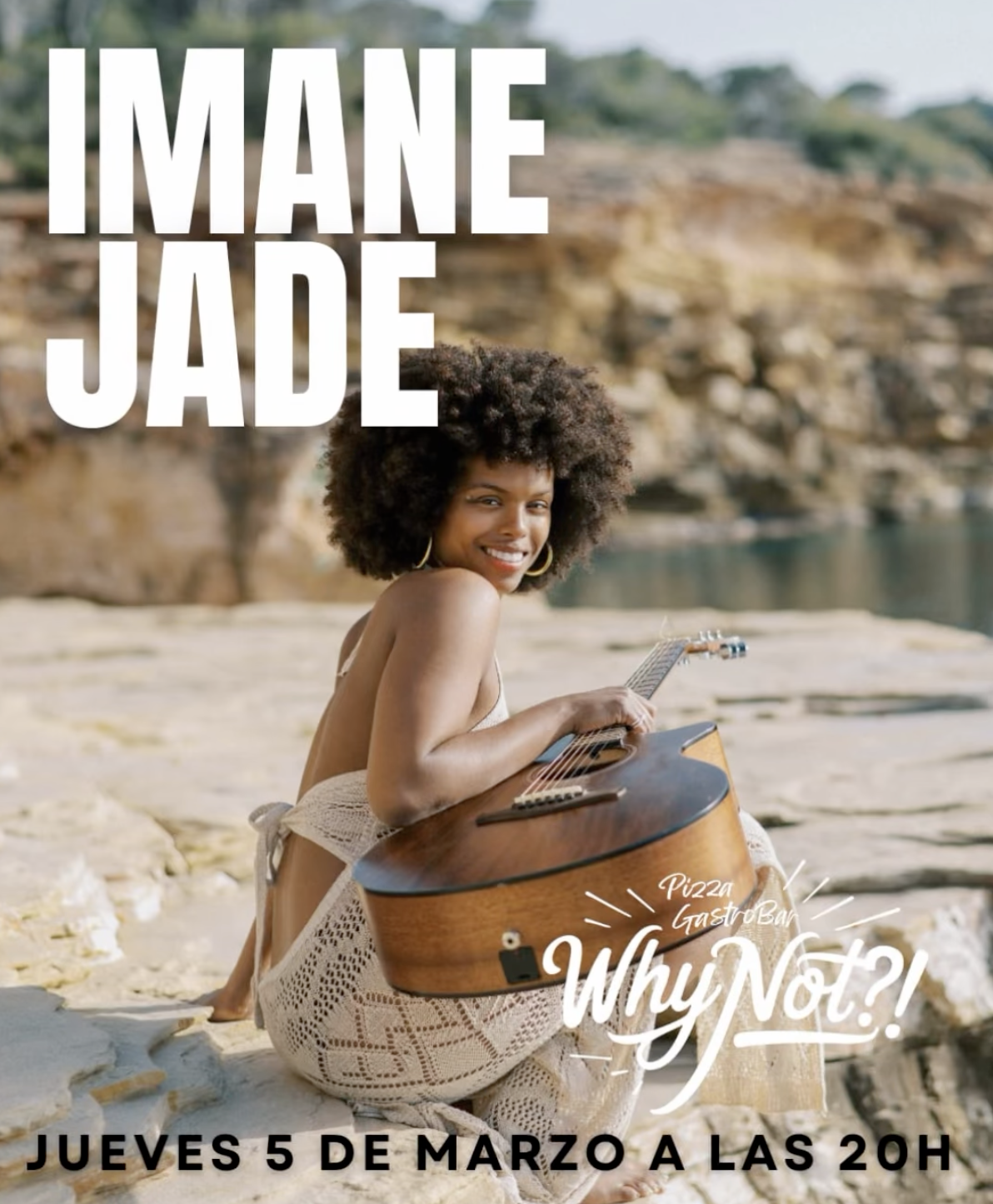 Why Not, el bar restaurante de Cala de Bou, ofrece todos los jueves música en vivo con los mejores artistas de la isla. Esta vez recibe a la cantante y guitarrista Imane Jade, una joven francesa de origen caribeño que lleva varios años actuando en la isla. Llegó procedente de Canarias, donde también trabajaba como artista, y trae un repertorio de soul y neosoul, con temas de Faith Evans, Tracy Chapman, Michael Jackson, Jamiroquai, Alicia Keys…