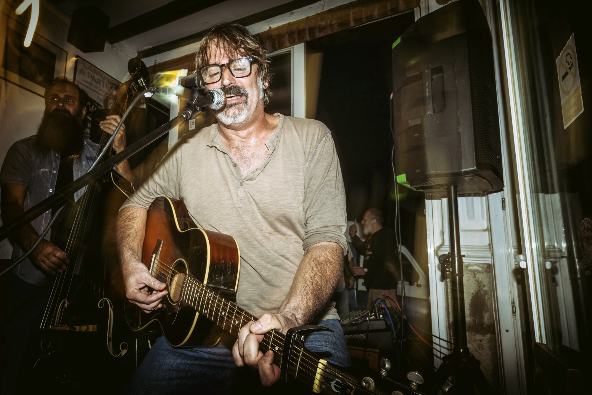 Alejandro Moreno, més conegut com Soulman Sal (1974), és un dels músics eivissencs més carismàtics i una enciclopèdia del rock, el blues, el folk i altres estils de música americana. Cantant, guitarrista i compositor d’Uncle Sal i membre també de les bandes The Station Hollers i Five Guys Walk Into A Bar, va posar en marxa el projecte Acoustic Springsteen l’abril de 2025, per encàrrec del fotògraf Joan F. Ribas, un dels organitzadors del certamen ‘Sant Josep és Foto’.